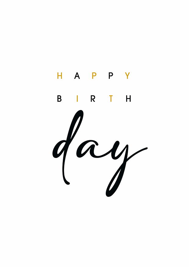 Eine einfache, aber elegante Geburtstagskarte mit dem Schriftzug Happy Birthday in unterschiedlichen Schriftarten auf weißem Hintergrund. Ideal für Glückwünsche.