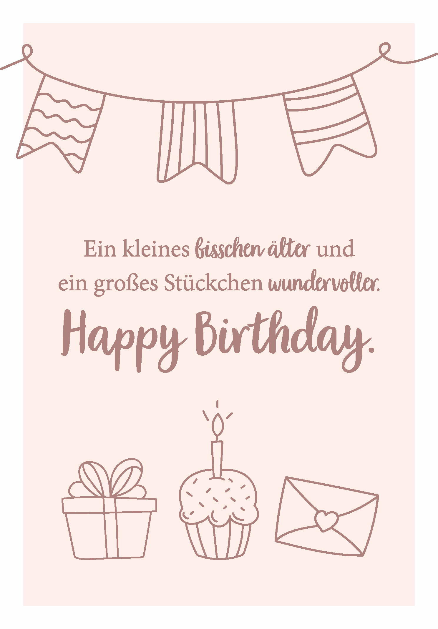 Die Karte zeigt eine liebevolle Geburtstagsbotschaft, umgeben von festlicher Dekoration, die den Anlass feiert und Freude verbreitet.