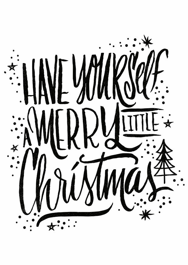 Der handgeschriebene Schriftzug vermittelt festliche Stimmung und lädt dazu ein, Weihnachten mit Freude und Besinnlichkeit zu feiern. Ein kleiner Weihnachtsbaum ergänzt das Design.