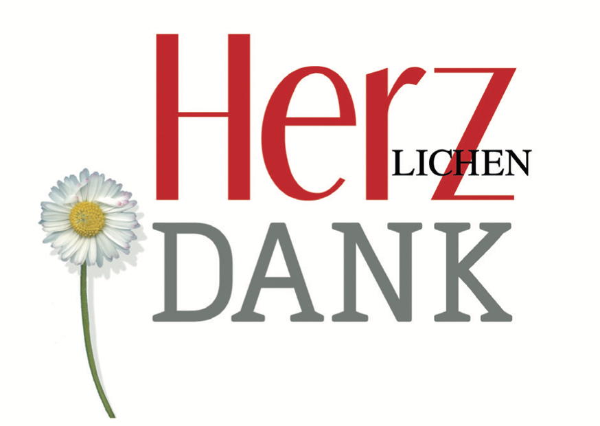 Ein stilvolles Dankeschön, das mit einer Margerite geschmückt ist, zeigt die Worte Herzlichen Dank in leuchtenden Farben. Ideal für Dankeskarten oder besondere Anlässe.