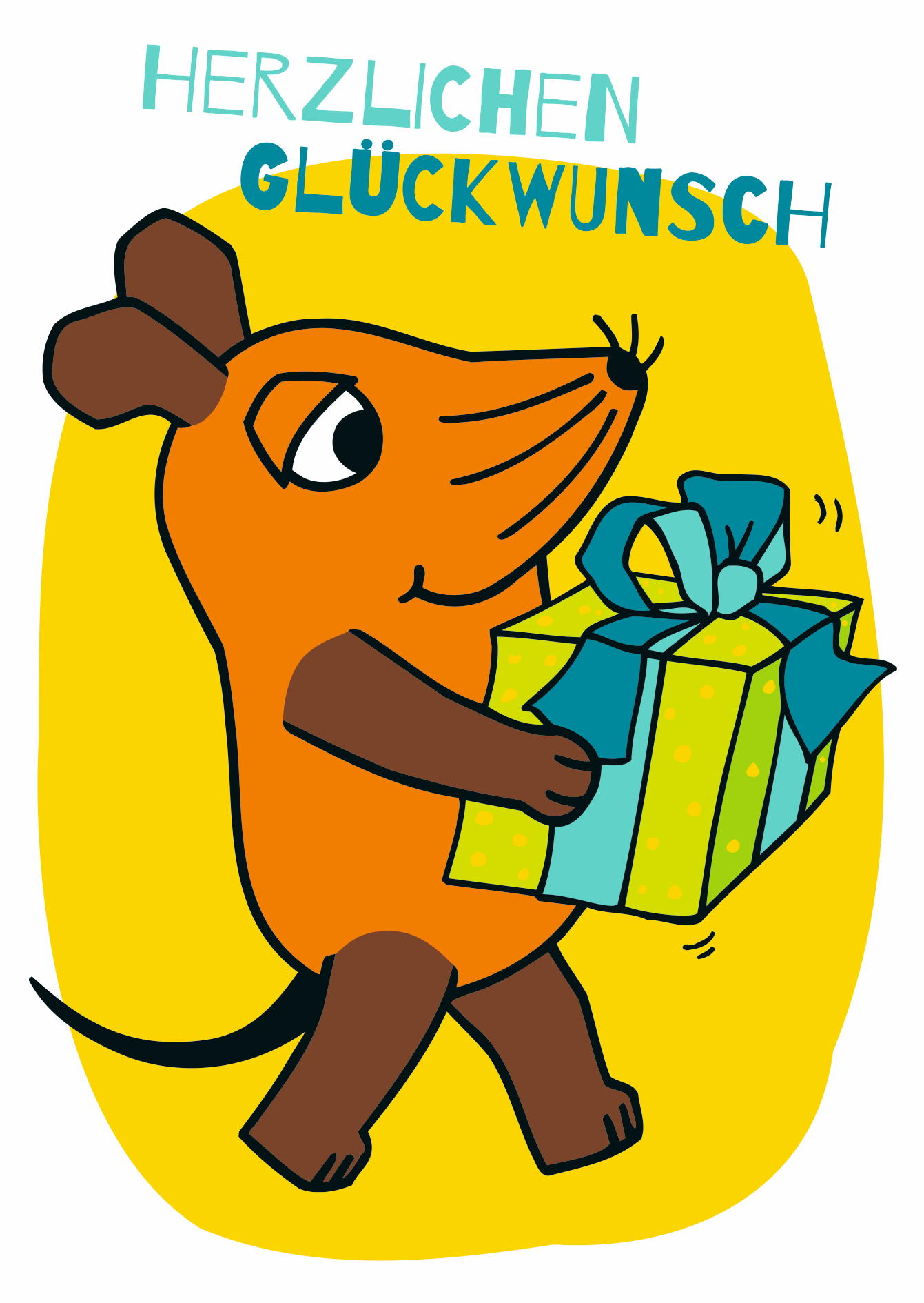 HERZLICHEN GLÜCKWUNSCH MAUS TRÄGT GESCHENK