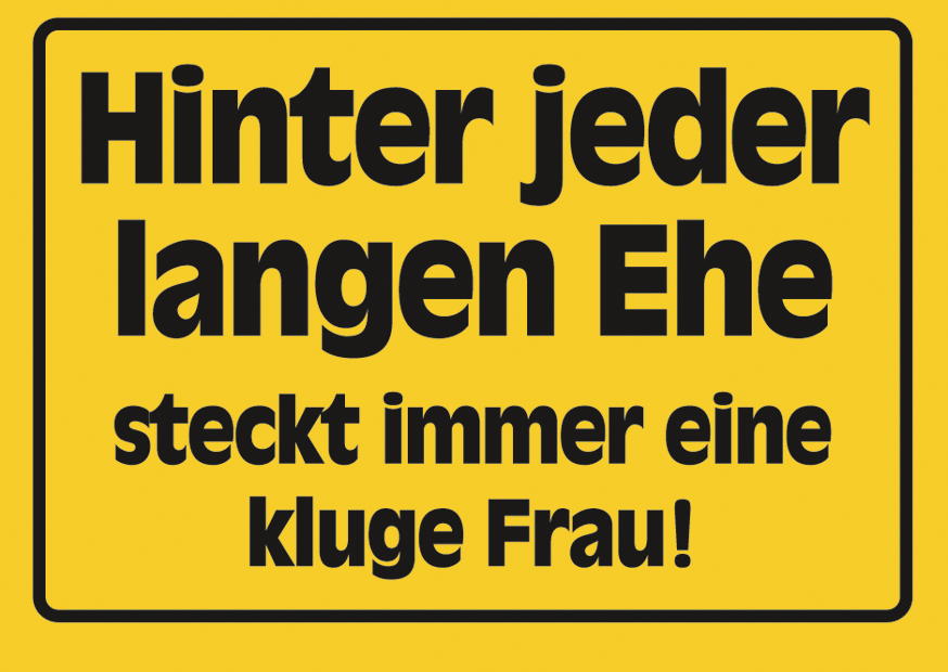 Ein auffälliges Schild betont die Rolle einer klugen Frau in einer langen Ehe. Es weist darauf hin, dass ihre Intelligenz und Klugheit essenziell für den gemeinsamen Erfolg sind.