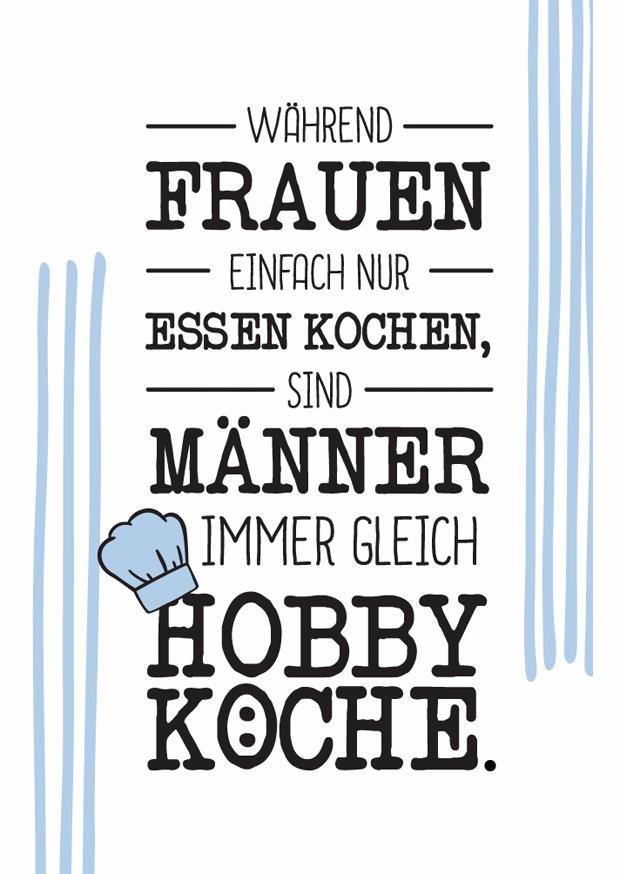 Das Plakat verdeutlicht auf witzige Weise, wie Frauen beim Kochen als selbstverständlich angesehen werden, während Männer oft als Hobbysstätten bezeichnet werden.