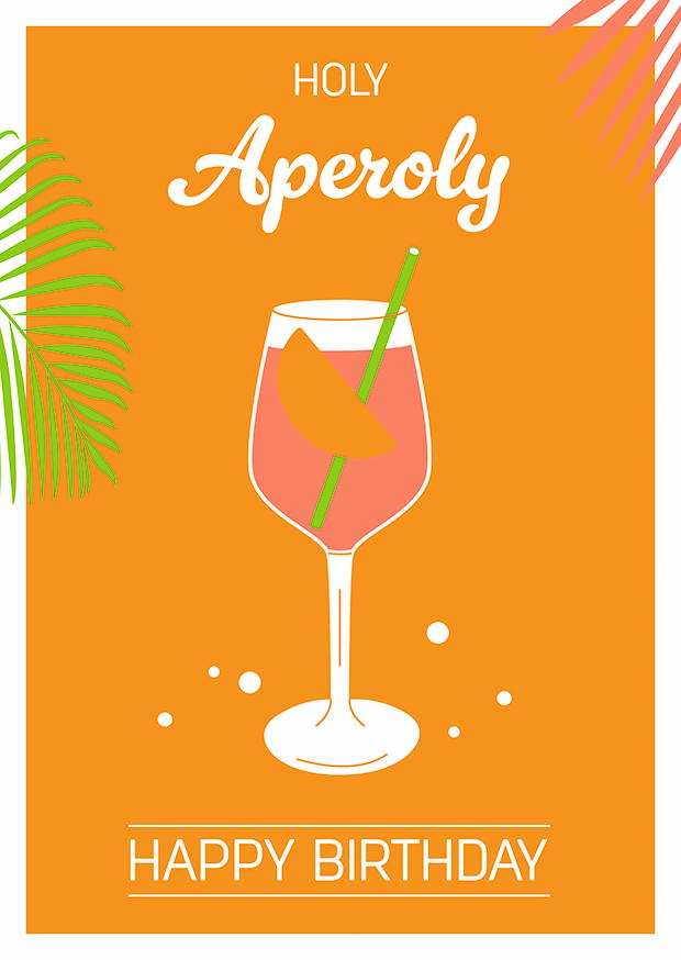 An einem sonnigen Geburtstag wird ein erfrischender Aperol-Drink in einem Glas serviert, dekoriert mit einer Orangenscheibe und einem Getränkeröhrchen.