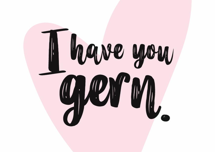Diese Darstellung zeigt einen liebevollen Ausdruck, der auf einem sanften pinken Hintergrund platziert ist. Der Text vermittelt eine warme und freundliche Botschaft.