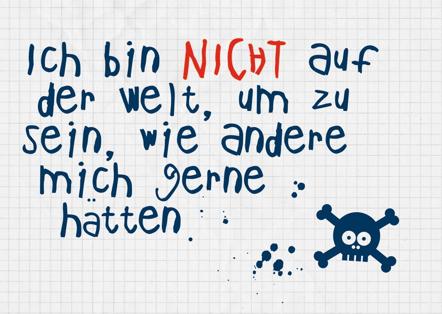 Eine kreative Botschaft auf kariertem Papier hebt die Bedeutung von Individualität und Selbstakzeptanz hervor. Der Text fordert dazu auf, man selbst zu sein.