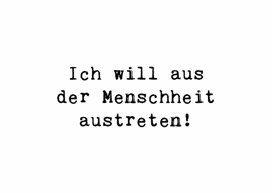 ICH WILL AUS DER MENSCHHEIT AUSTRETEN!