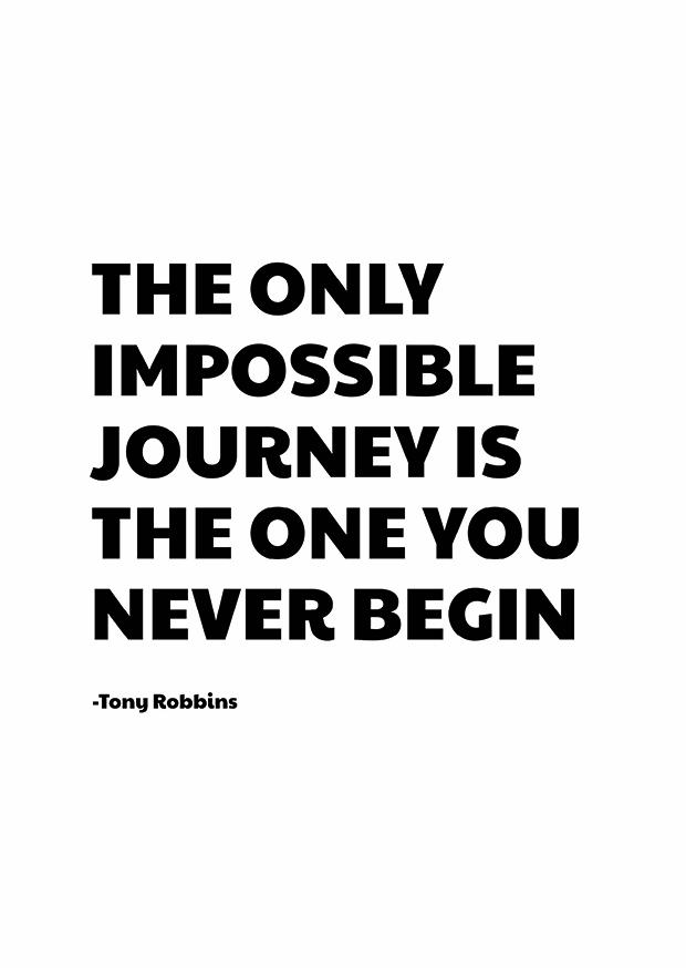Ein kraftvolles Zitat von Tony Robbins ermutigt, den ersten Schritt in neue Abenteuer zu wagen und persönliche Ziele zu verfolgen. Die Botschaft ist motivierend und aufbauend.