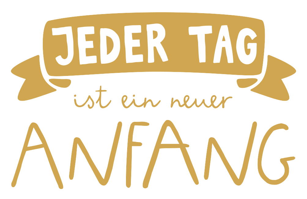 Eine motivierende Botschaft, die jeden Tag als neue Chance präsentiert. Die Schrift ist freundlich und einladend gestaltet und sorgt für positive Stimmung.