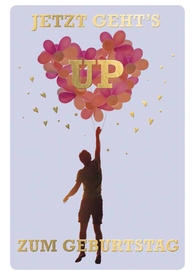 Ein Junge hält eine große Menge pinkfarbener Herzluftballons in die Höhe und feiert begeistert seinen Geburtstag. Die Atmosphäre ist fröhlich und festlich.