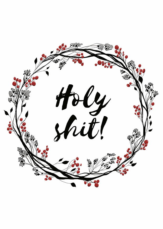 Ein schöner Blumenkranz mit filigranen Pflanzen und leuchtend roten Beeren umgibt den Schriftzug, der einen humorvollen Ausdruck einfasst und ideal für kreative Projekte ist.