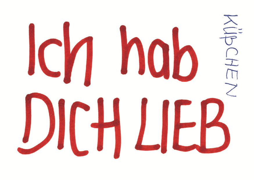 Eine handgeschriebene Liebesbotschaft in kräftigen Farben vermittelt Gefühle der Zuneigung und Wärme. Perfekt für einen besonderen Moment oder Anlass.
