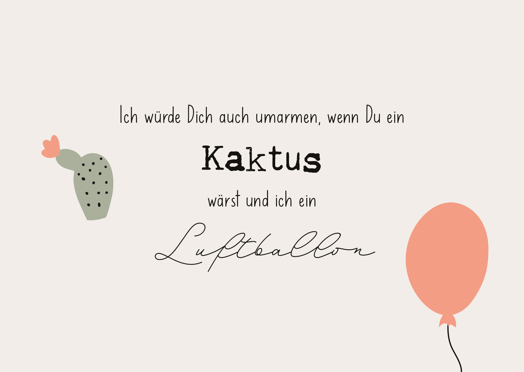 Eine farbenfrohe Grafik zeigt einen Kaktus und einen Luftballon mit einem herzlichen Text. Die Gestaltung strahlt eine verspielte und fröhliche Atmosphäre aus.
