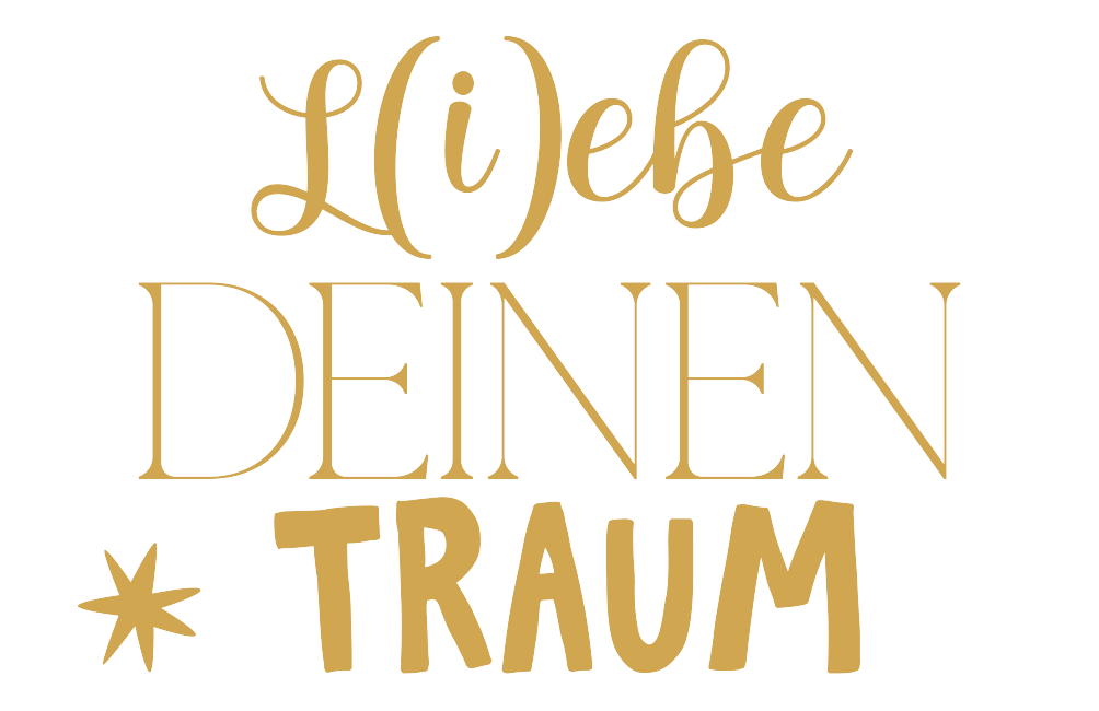 Der Spruch Liebe deinen Traum motiviert und inspiriert Menschen, ihre Ziele zu verfolgen. Die goldene Schrift hebt sich schön vom weißen Hintergrund ab.