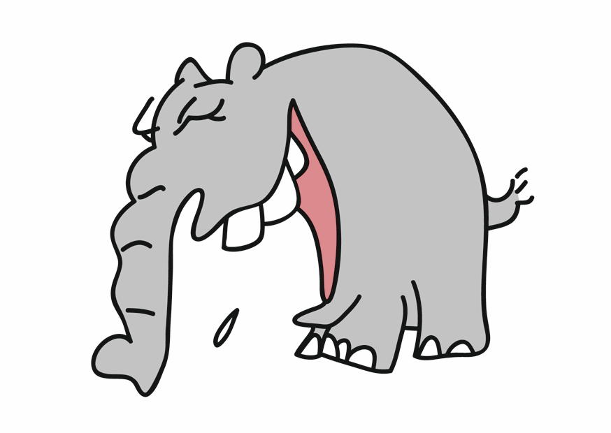 Ein niedlicher, cartoonartiger Elefant gähnt und hält seine Zunge heraus. Die Darstellung ist einfach und farbenfroh, ideal für Kinder und Tierliebhaber.
