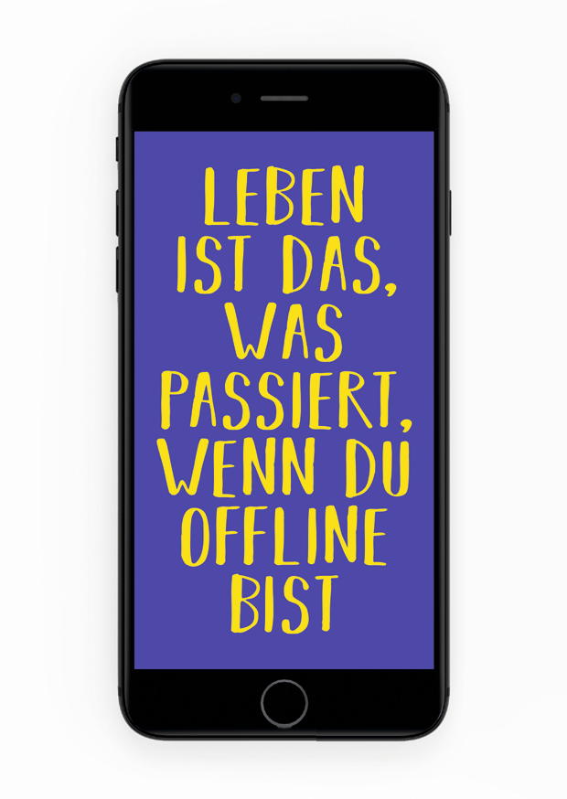 Ein auffälliger Hintergrund auf einem Smartphone zeigt die Botschaft, dass das wahre Leben abseits des Bildschirms geschieht. Die leuchtenden Farben ziehen sofort die Aufmerksamkeit auf sich.