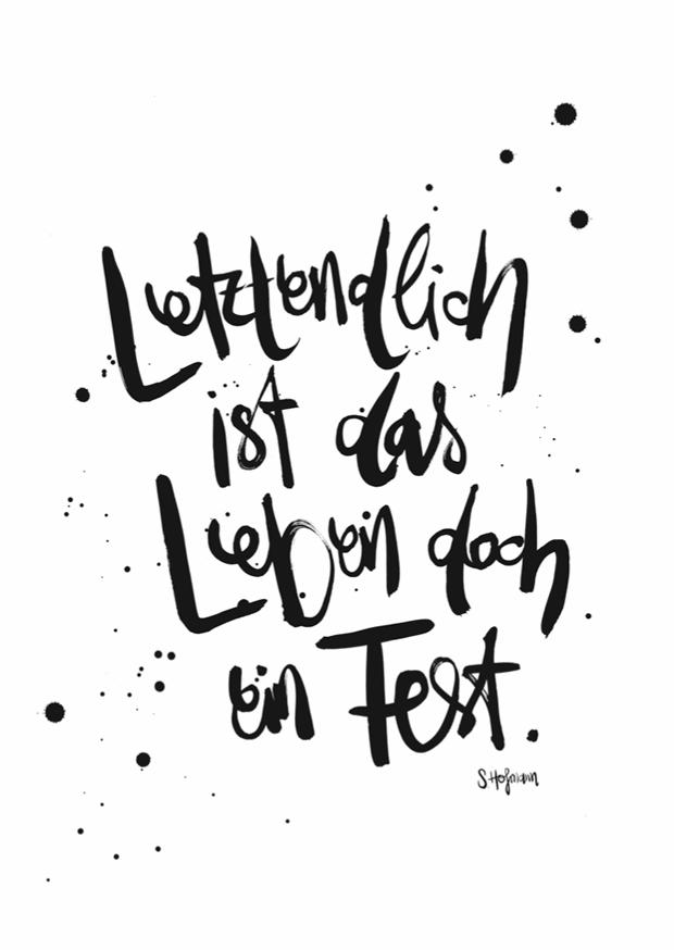 Inspirierende Schriftzüge vermitteln die Botschaft, dass das Leben eine Feier ist. Die künstlerische Gestaltung zieht den Betrachter in ihren Bann und regt zum Nachdenken an.