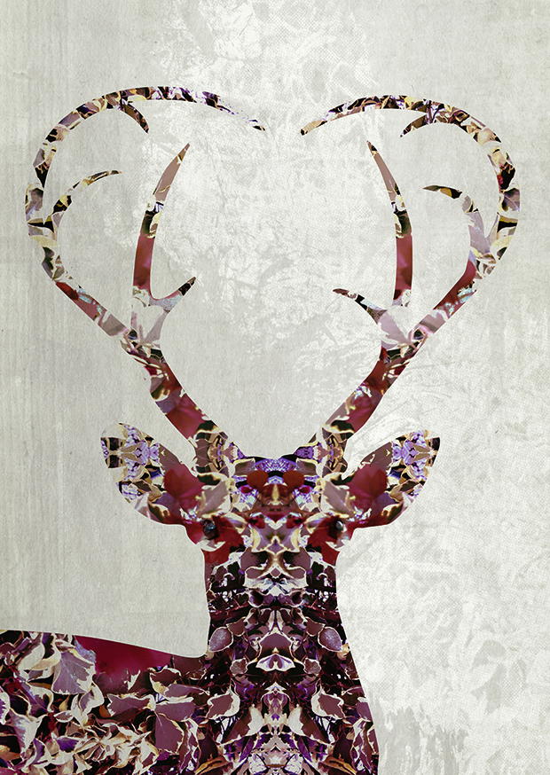 Ein Hirsch wird durch farbenfrohe Muster und Texturen dargestellt, die im modernen Stil gestaltet sind. Diese Kunstform zieht sofortige Aufmerksamkeit auf sich und bereichert jeden Raum.