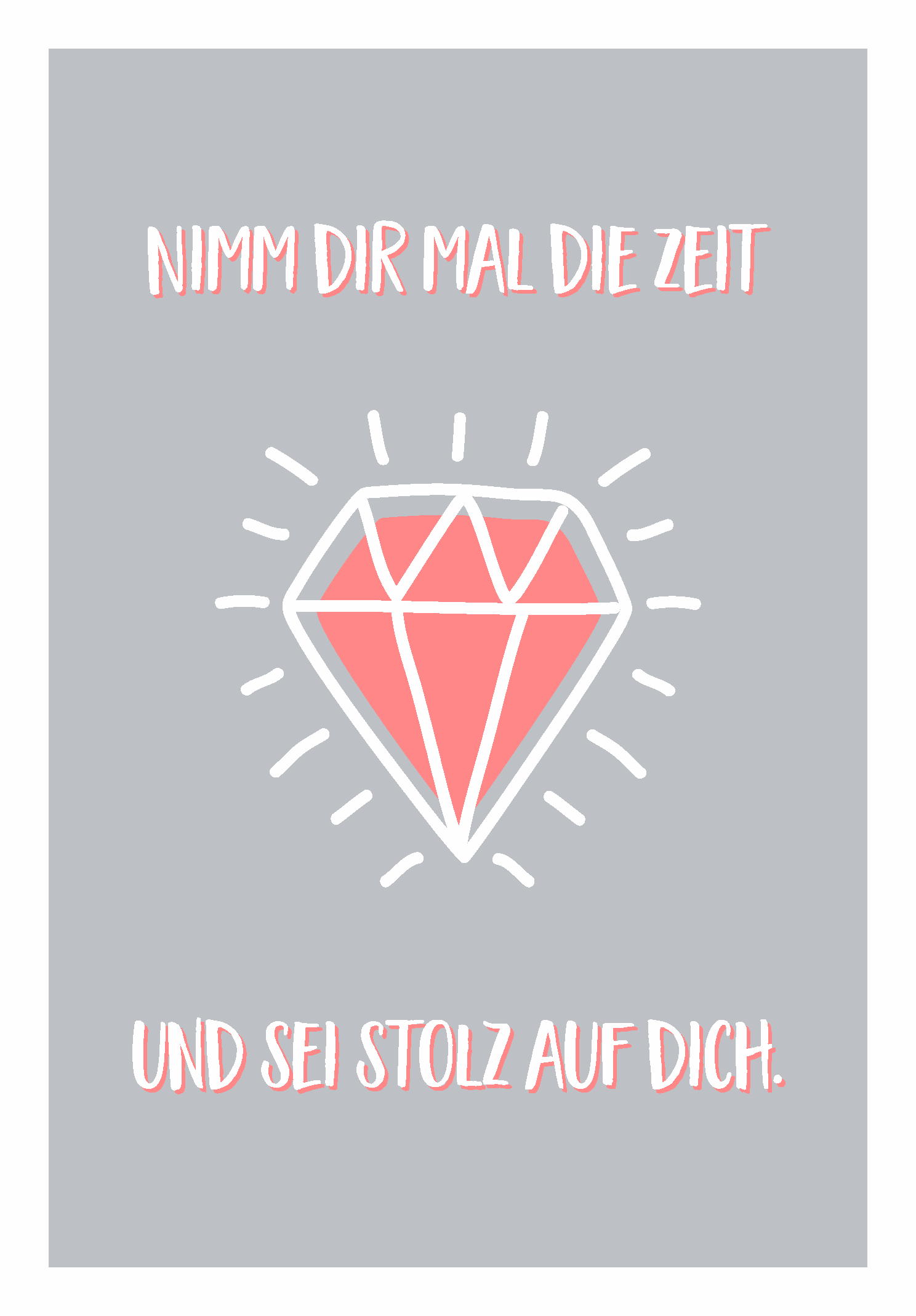 Ein Motivationsplakat zeigt einen stilisierten Diamanten in der Mitte mit der Aufforderung, sich Zeit für sich selbst zu nehmen und stolz auf die eigenen Erfolge zu sein.