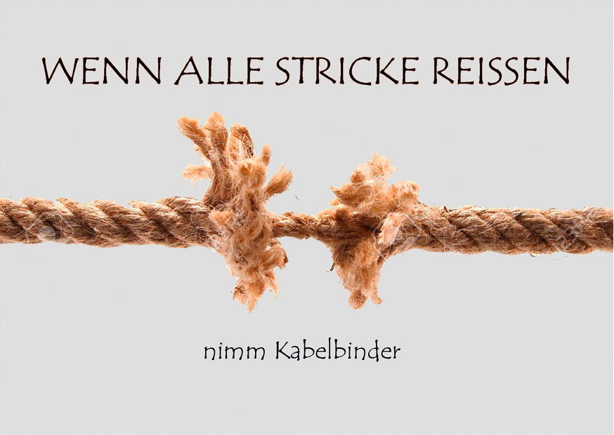 Das Bild zeigt eine Zwiespaltung eines Jute-Seils, verbunden durch Kabelbinder, und thematisiert das Festhalten in schwierigen Zeiten.