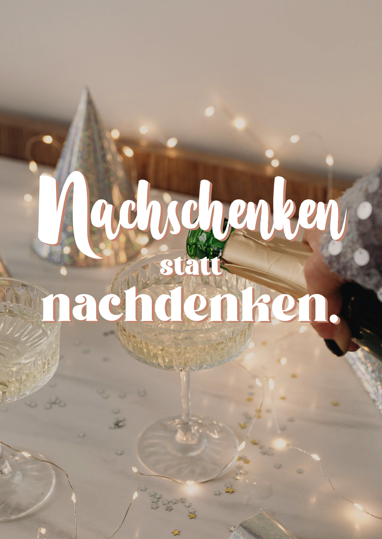 Ein eleganter Moment beim Nachschenken von Champagner in funkelnde Gläser, umgeben von festlichen Lichtern und Weihnachtsdeko. Die Atmosphäre ist heiter und einladend.
