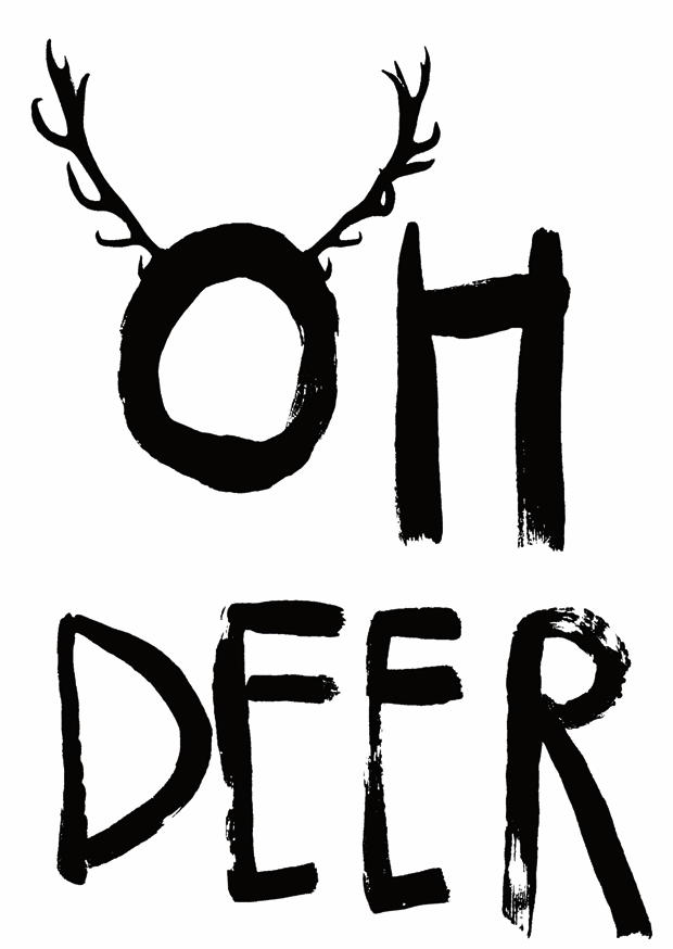Das Design zeigt einen humorvollen Spruch mit einem Hirschkopf und den Worten „Oh Deer“ in künstlerischer Schrift. Perfekt für Winterdekoration oder als witziges Geschenk.