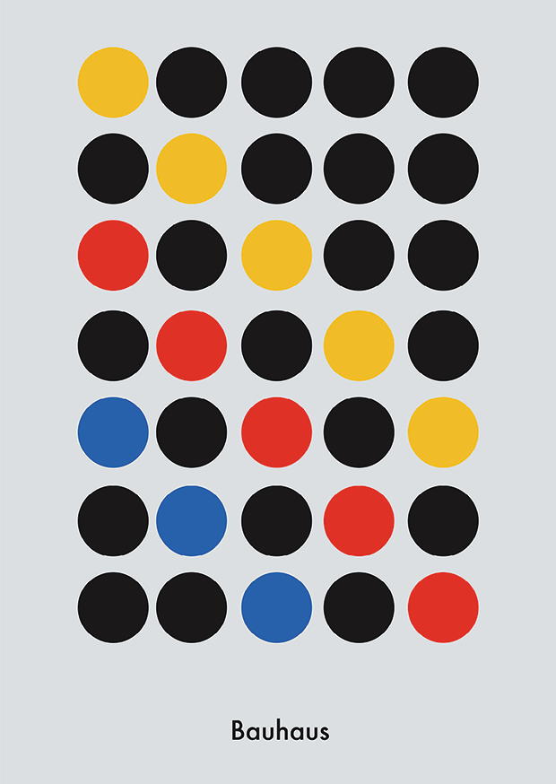 Ein Muster aus bunten Kreisen in verschiedenen Farben auf einem hellen Hintergrund, das die Elemente des Bauhaus-Designs verkörpert und minimalistische Ästhetik zeigt.