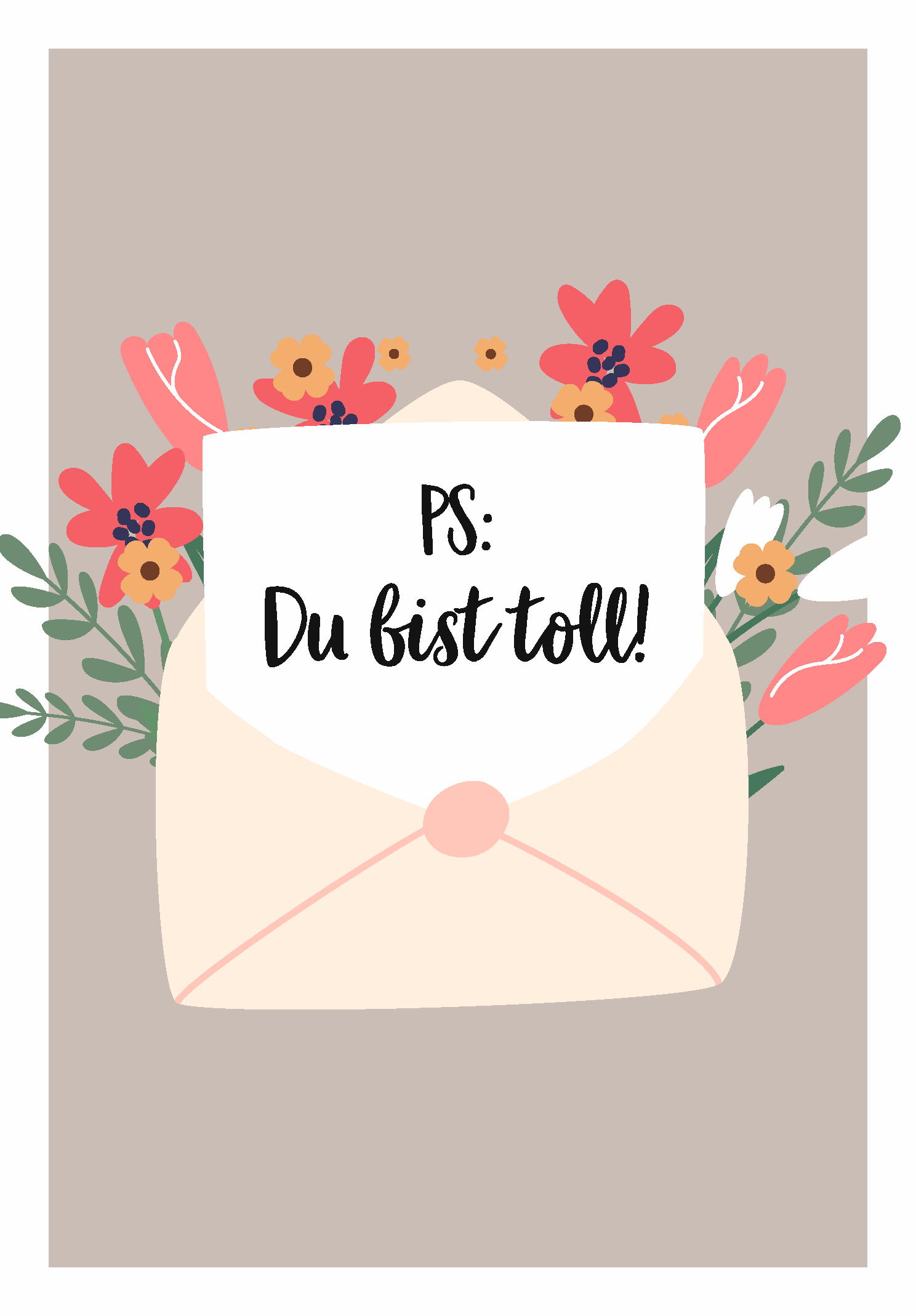 Ein Umschlag mit einem handgeschriebenen Gruß, umgeben von bunten Blumen, der eine positive Botschaft der Anerkennung übermittelt.
