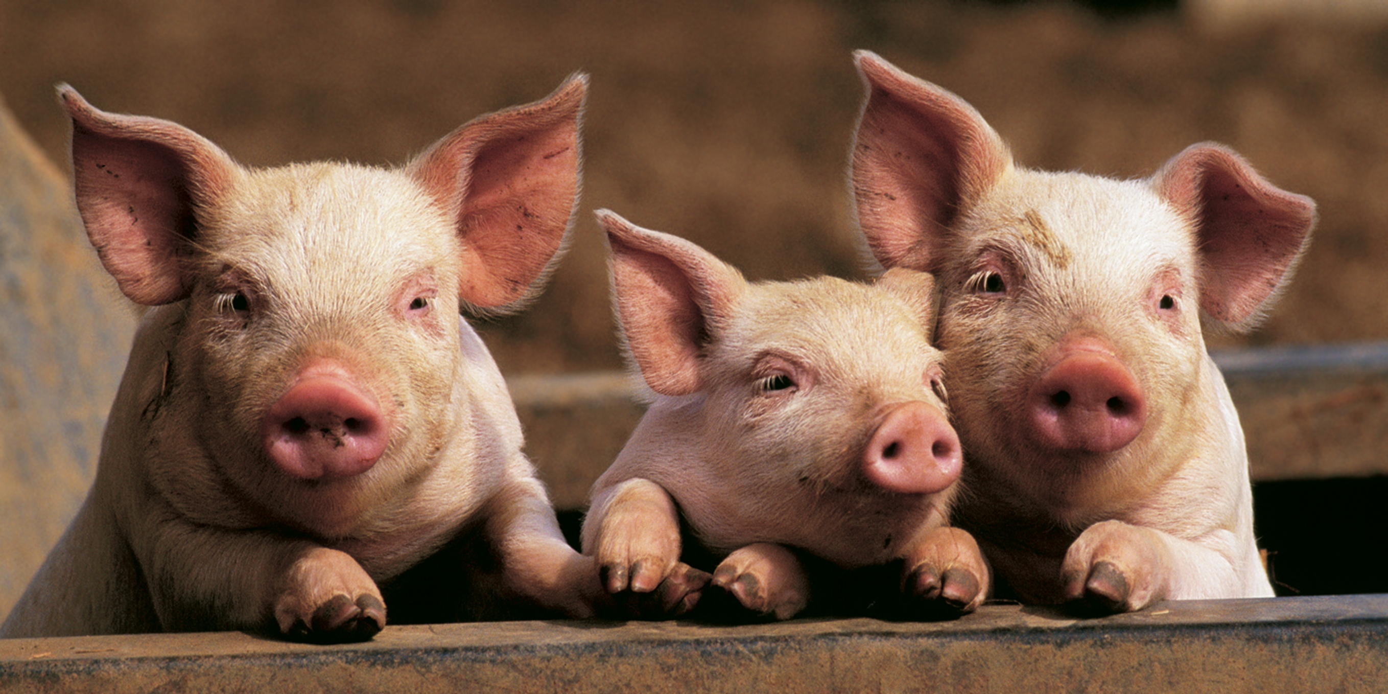 Drei kleine Ferkel liegen entspannt auf einem Bauernhof, während die Sonne sie erwärmt. Sie wirken neugierig und freundlich und genießen ihren Tag.