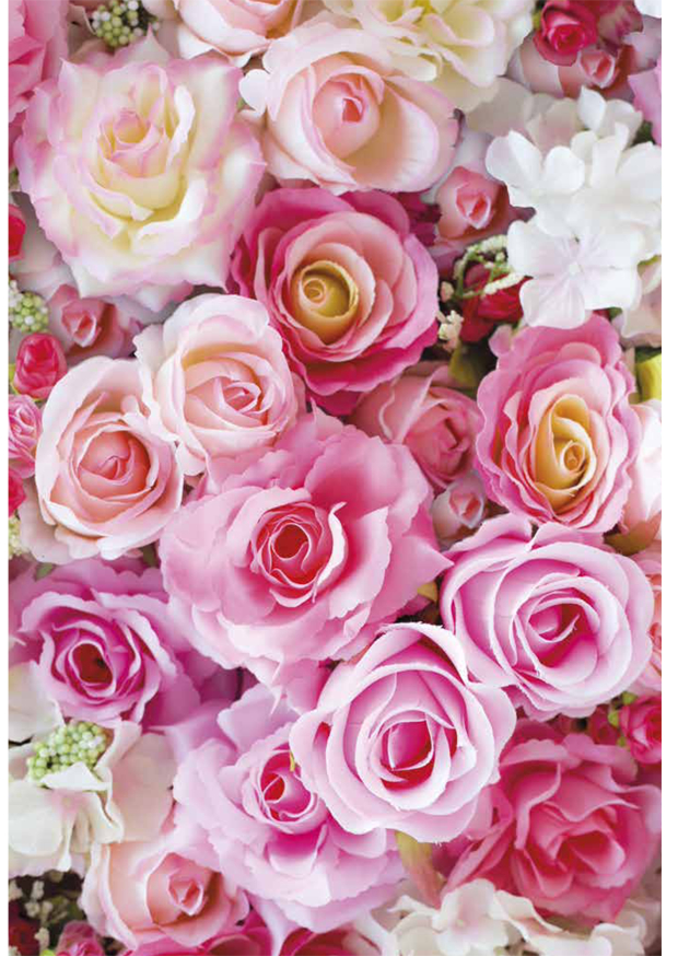 Eine beeindruckende Anordnung von rosa Rosen in verschiedenen Schattierungen, ideal für eine festliche Frühlingsdekoration oder als Geschenk.