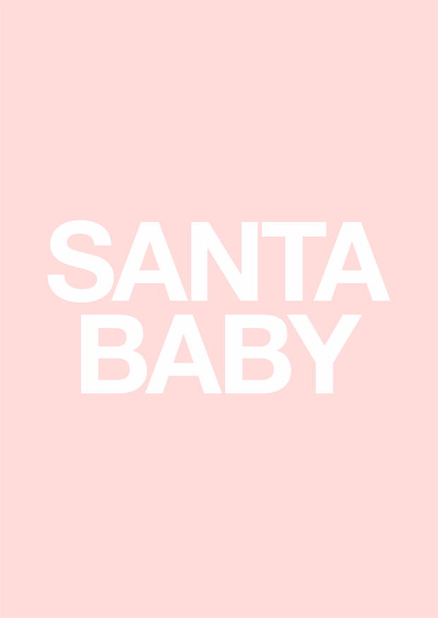 Das einfache, pinke Design zeigt in großen, weißen Buchstaben den Text Santa Baby. Es vermittelt eine festliche Stimmung und weihnachtliche Vorfreude.