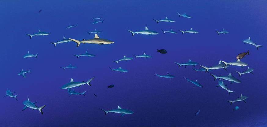 Produktinformationen "SCHWARM VON GRAUEN RIFFHAIEN, MALEDIVEN * XXL"