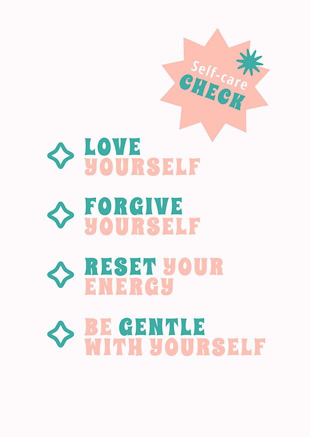 Eine inspirierende Liste mit Tipps zur Selbstpflege, die Selbstliebe, Vergebung und Achtsamkeit hervorhebt, um das persönliche Wohlbefinden zu stärken.