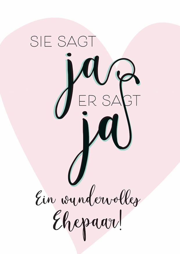 Das Design zeigt ein romantisches Herzmotiv mit dem Text, der die Zustimmung eines Ehepaares zu ihrer gemeinsamen Zukunft feiert. Die Schriftart ist elegant und einladend.