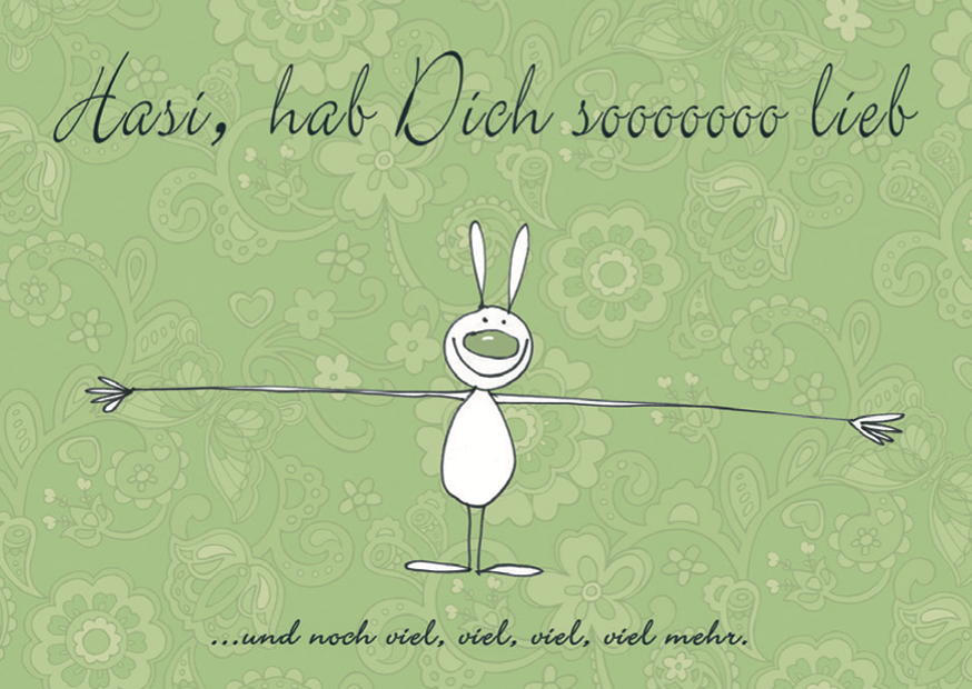 Ein einfacher Cartoon-Hase steht mit weit ausgestreckten Armen da und drückt seine Liebe zu jemandem aus, umgeben von einem dekorativen Hintergrund.