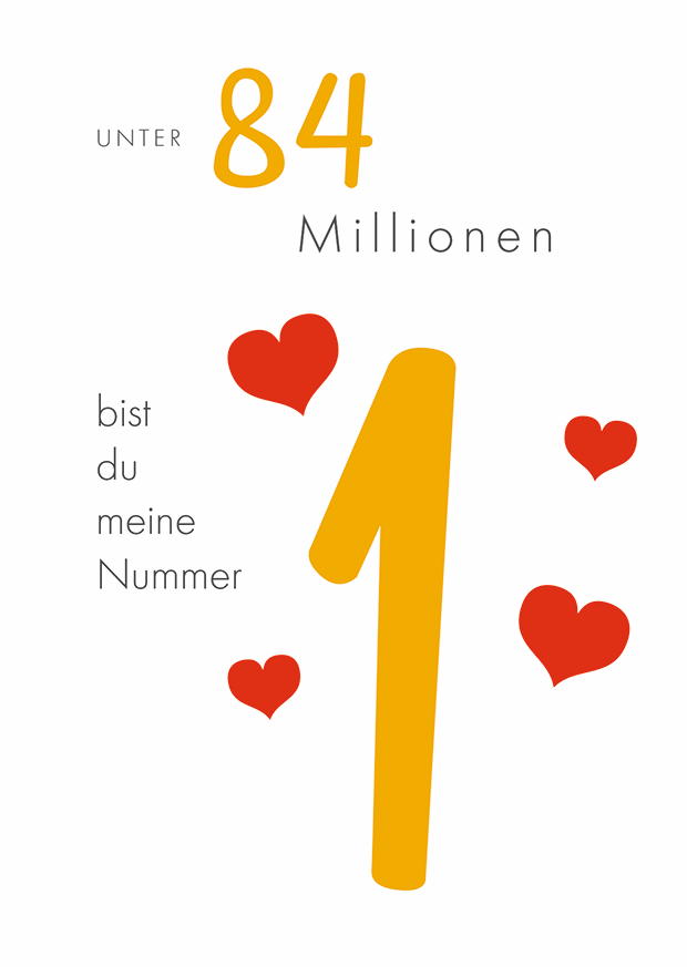 Ein herzlicher Ausdruck der Zuneigung zeigt die Zahl eins umgeben von roten Herzen. Diese Botschaft feiert die Einzigartigkeit des geliebten Menschen in einer kreativen Weise.