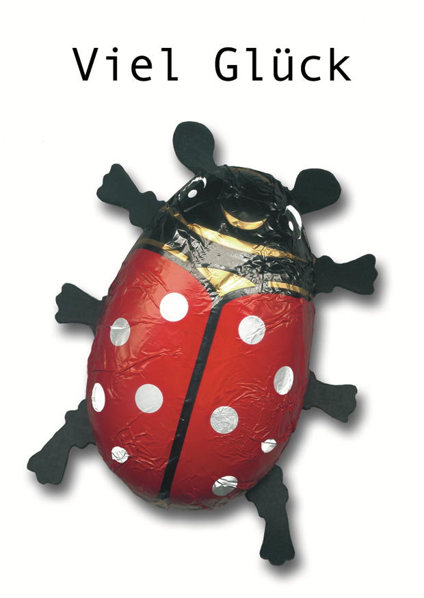 Der Glücksbringer in Form eines Käfers hat eine auffällige rote Farbe mit weißen Punkten. Schädelformen verleihen ihm ein kreatives und originelles Aussehen.