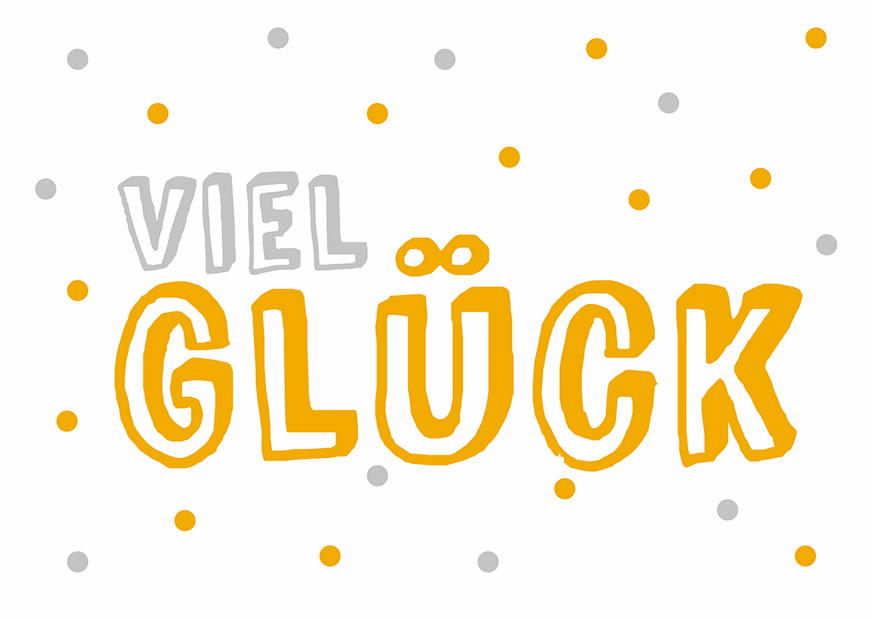 Das Motiv präsentiert einen bunten Schriftzug mit dem Wort Viel Glück umgeben von zahlreichen Punkten, perfekt für Glückwünsche und festliche Ereignisse.