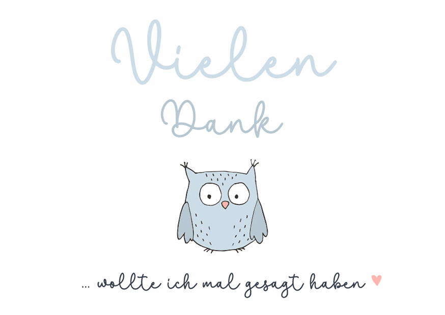 Eine liebevolle Dankesbotschaft mit einer niedlichen Eule, ideal für persönliche Mitteilungen oder als Karte für besondere Anlässe. Freundlich und einladend gestaltet.