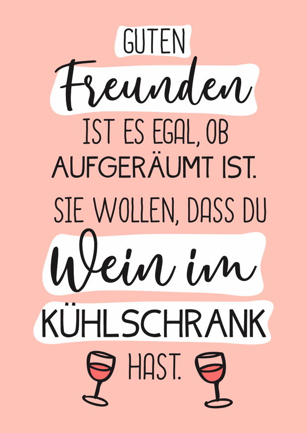 Gute Freunde kümmern sich nicht um Sauberkeit, sondern freuen sich, wenn du Wein bereit hast. Entspannende Momente sind das Wichtigste.