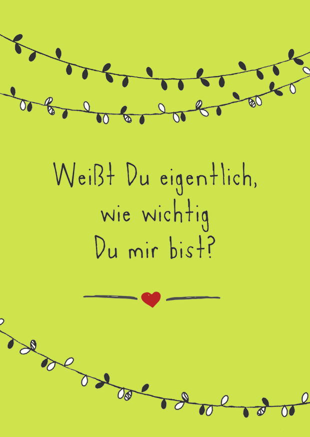 Eine farbenfrohe Gestaltung mit Lichtern und einer liebevollen Botschaft auf grünem Hintergrund zeigt, wie wichtig jemand für den Absender ist.