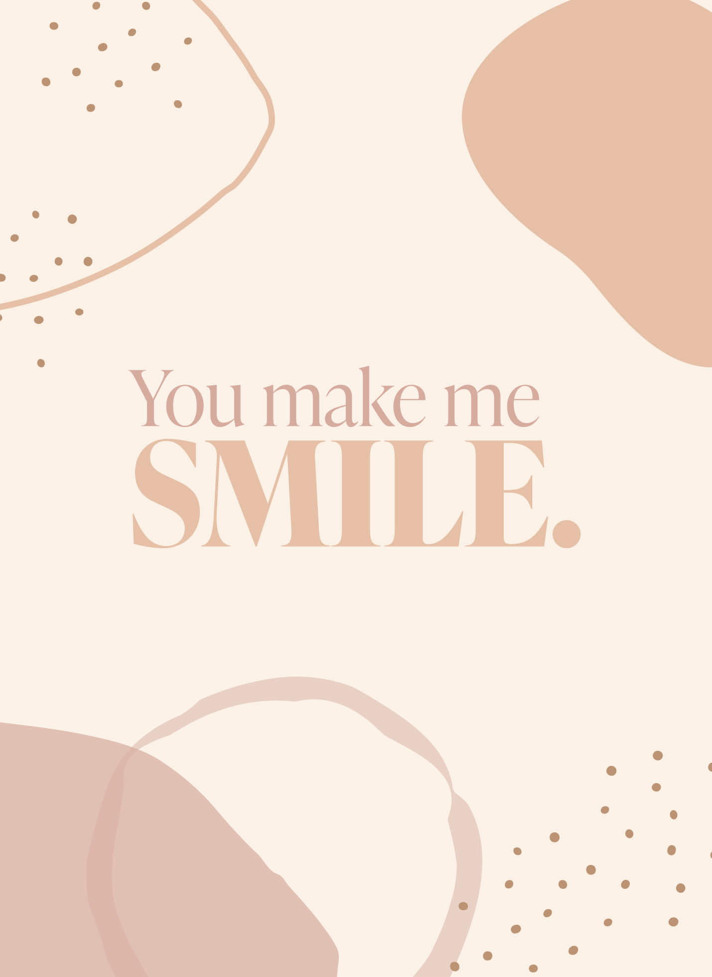 Das Design zeigt eine freundliche Botschaft in einer angenehmen Schriftart, kombiniert mit sanften Farben und minimalistischen Formen. Es wirkt einladend und heiter.